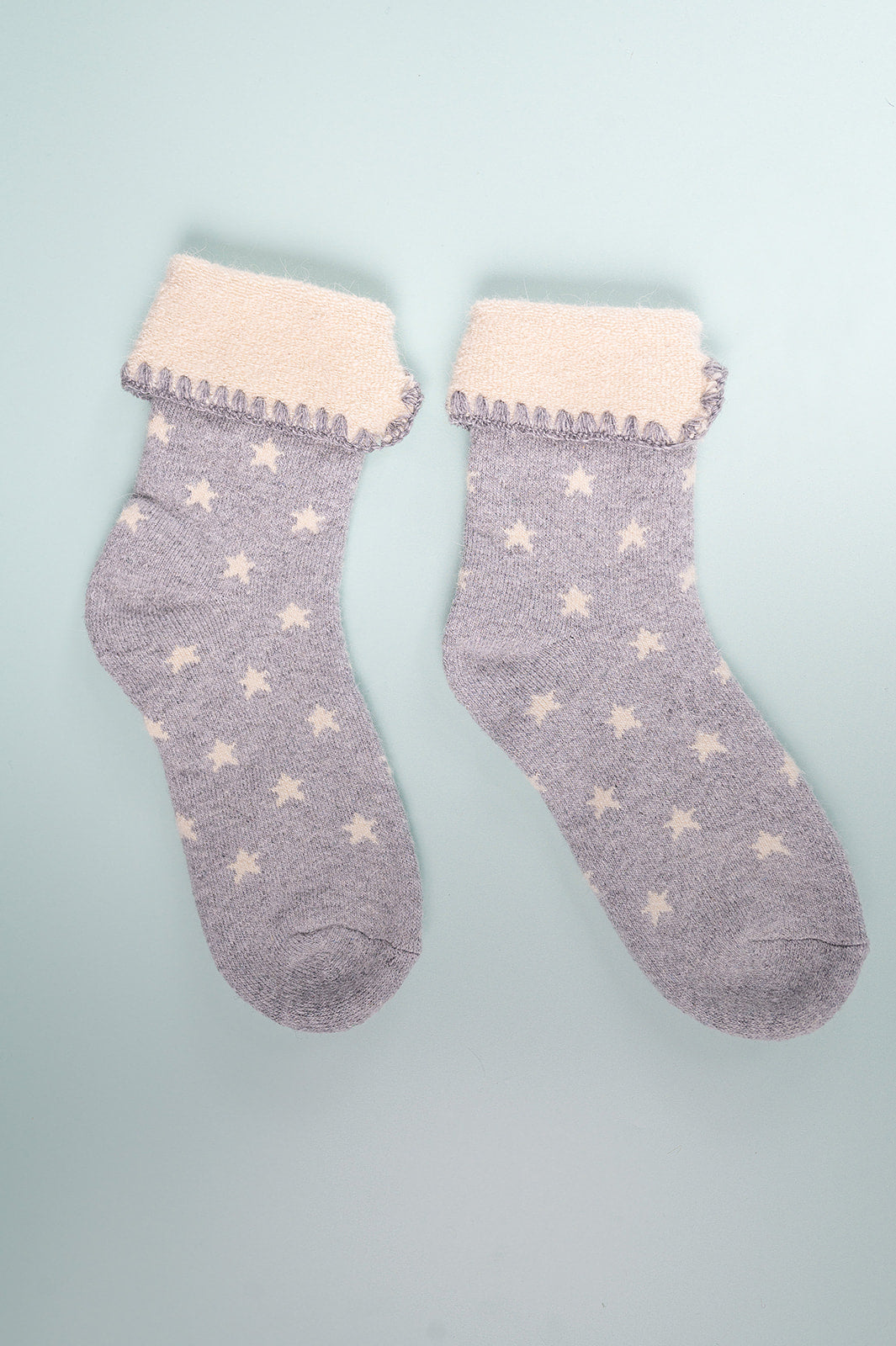 Grey Cuff Socks with White Stars